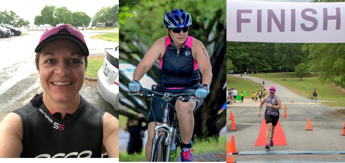I was too proud to back out, though, and happy to accompany Patty to the event at the beautiful Lake Anna State Park. I decided the goal of the day was completion, not speed. Also: do not drown, crash my bike, or kill myself running. A fast hike would work thank you very much.